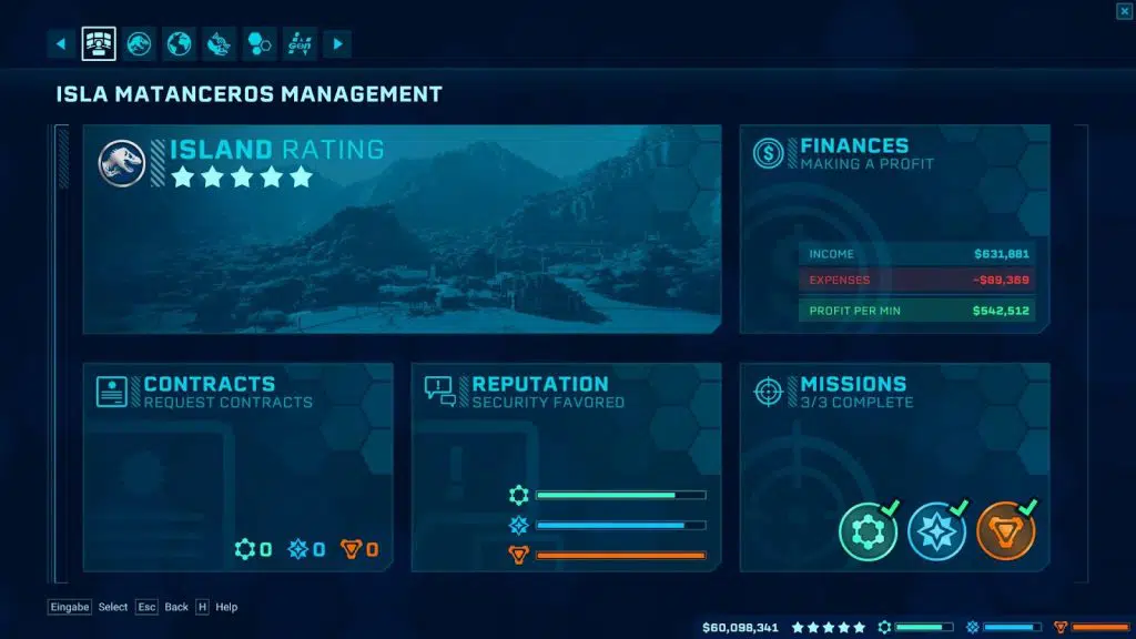 Creator JustChill played through Jurassic World Evolution 6 times, and instead of finishing it up, wiped everything built on the 6 islands and saved the games separately.