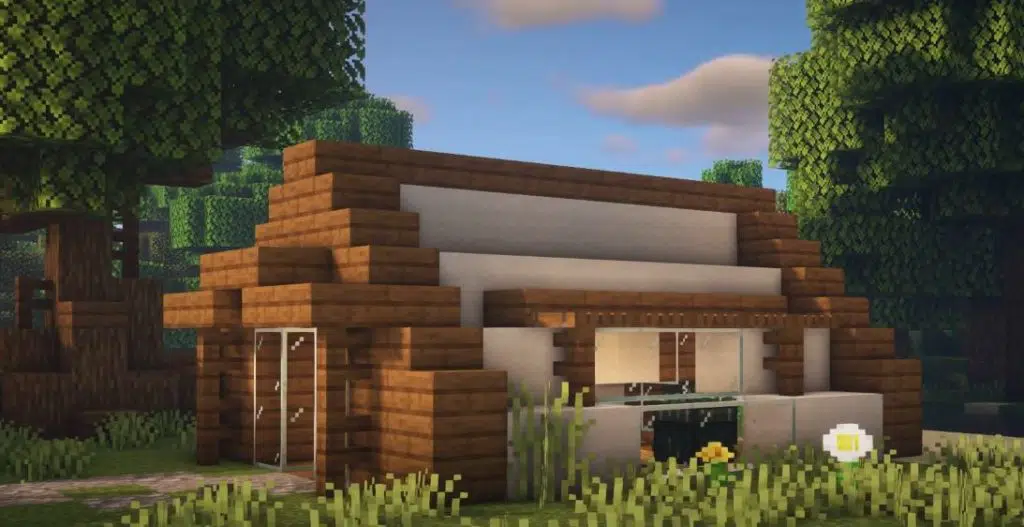 A wooden survival home will be your first base, but it doesn’t have to be all boxes and boring as Minecraft house ideas usually are.